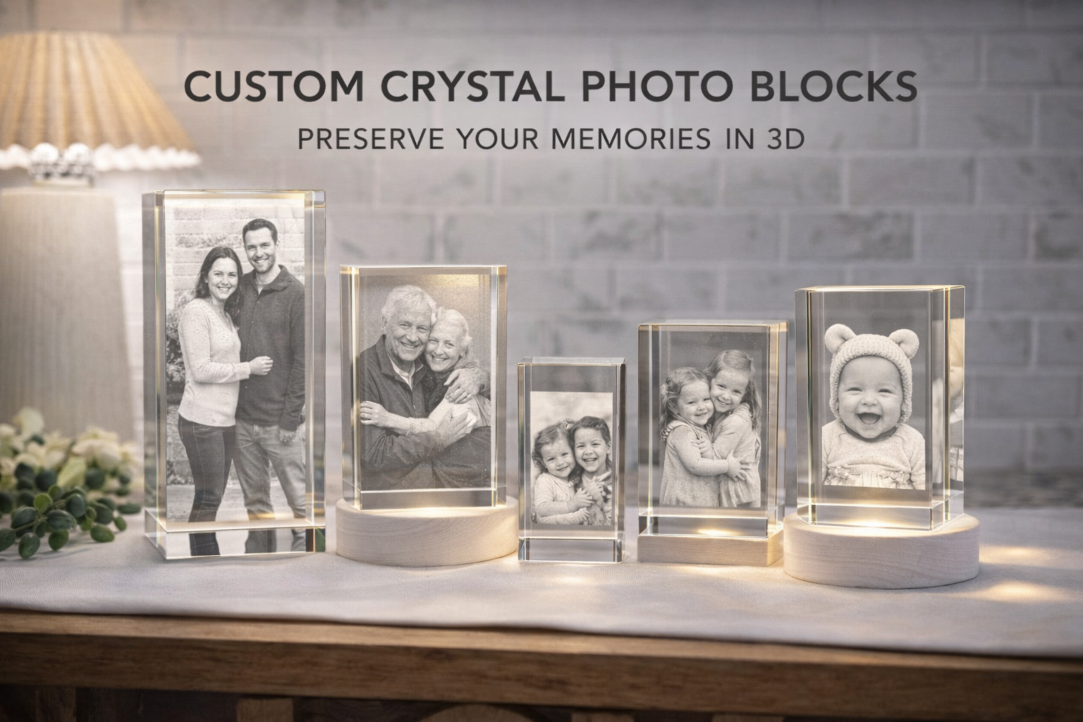 Our Custom 3D Crystal Photo Blocks are laser-engraved inside premium optical crystal, creating a stunning floating image that will never fade or scratch.